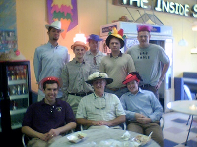 Erik, Dave, Stephan, and myself working on our Students in Free Enterprise presentation in our hotel room, April 2004 |